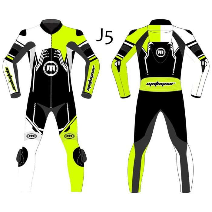 MOTO GEAR Racing Leather Suit is specially designed for professional bikers to fulfill their biking passion on track with great safety. This suit features excellent design &     comfort, 100% genuine Cowhide leather, CE Approved internal & external Protectors on the Knee, Shoulder, elbow, and Back, YKK Zippers for Performance, and Outer Knee sliders for performance. Full ventilated Chest to keep the biker cool while riding (Optional). Available in Men, Women, and Kids fitting.